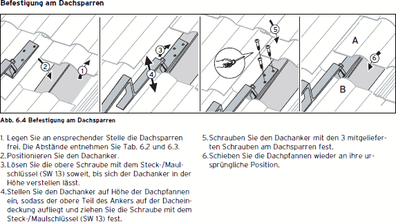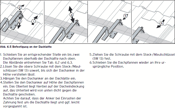 Hinweis: Überprüfen Sie vor der Montage an der Dachlatte unbedingt die Tragfähigkeit der Dachlatte! Tauschen Sie die Dachlatte ggf. aus.