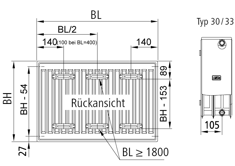 - Heizkörper mit 4 Laschen aus Stahlblech gemäß EN 442.