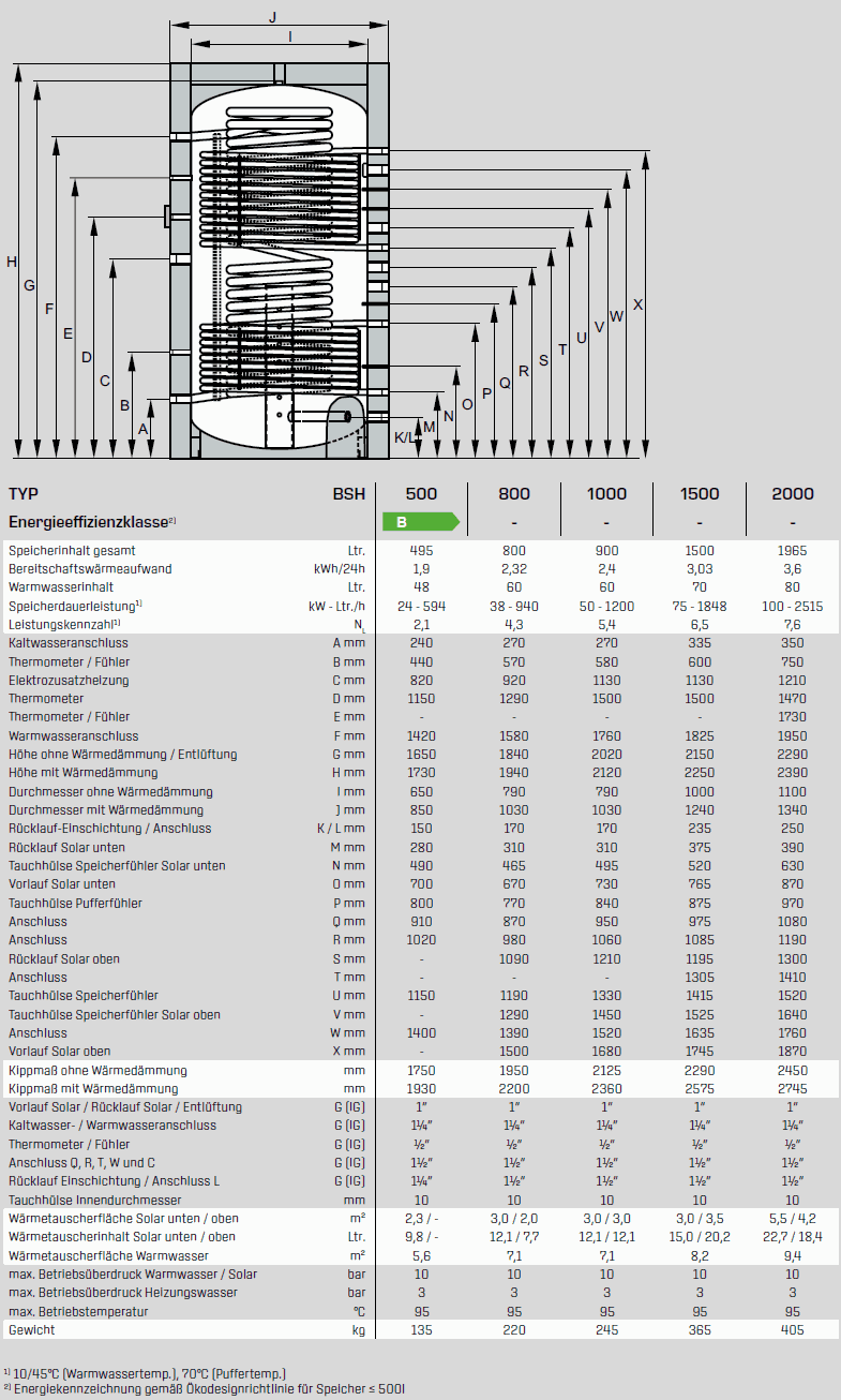 - Kurzfristig höhere verfügbare Zapfleistung durch hohen Wasserinhalt des Warmwasser-Wärmetauschers (48 - 80 Liter je nach Speichergröße).