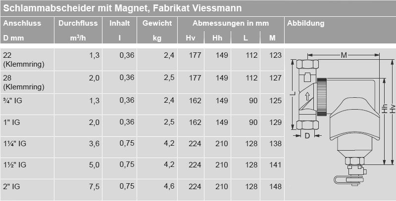 - Mit Ablasshahn zur Beseitigung der aufgefangenen Schlamm- und Magnetpartikel, auch möglich während des Anlagenbetriebes.