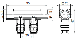 - Messingprofil mit zwei Heizkreisanschlüssen