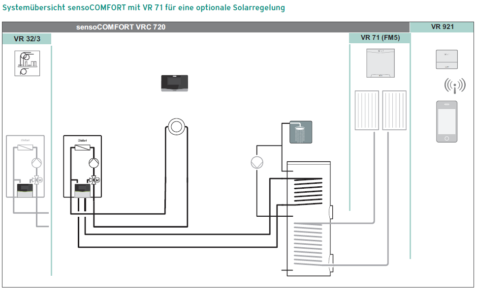 Für Fußbodenheizung ist zusätzlich ein VRC 9642 Anlegethermostat für den Fußbodenheizkreis erforderlich.