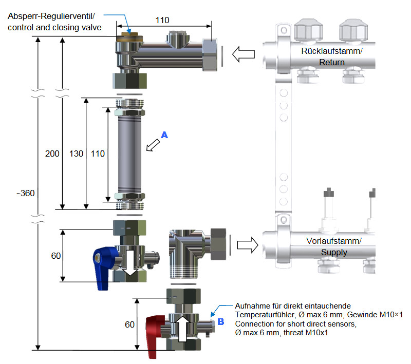 Heizkreisverteiler Edelstahl für 3-12 Heizkreise