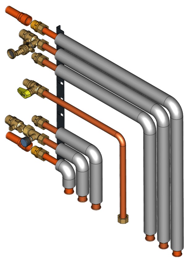 Hydraulische Adapter als Ersatz für VIESSMANN Pendola. Für Aufputz-Montage. Bestehend aus vorgefertigten Leitungen und Absperrhähnen. Zur Verbindung der baus...