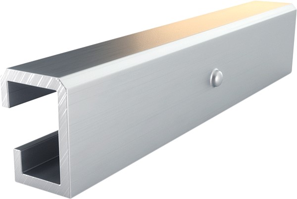 Schiene schwarz zur Befestigung von PV-Modulen.
