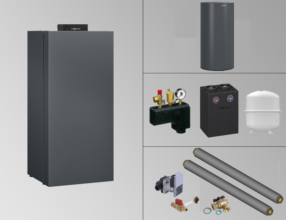 Viessmann 7-35kW Gas-Brennwert-Paket für Heizung und Trinkwassererwärmung mit Divicon Pumpengruppe ohne Mischer.