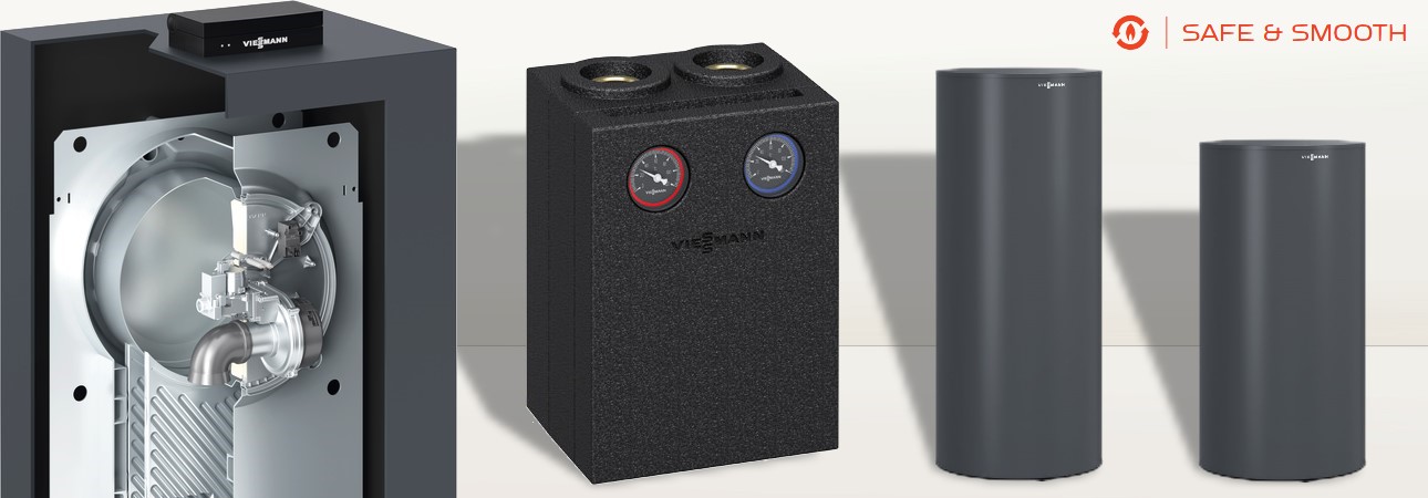 Viessmann 5,2-26kW Gas-Brennwert-Paket für Heizung und Trinkwassererwärmung mit Pumpengruppe ohne Mischer.