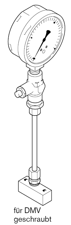 Weishaupt Manometer für DMV (geschraubte Ausführung) mit Adapter-Set für Gasdruckwächter GW A5. Einsatzbereich 0 - 300 mbar.