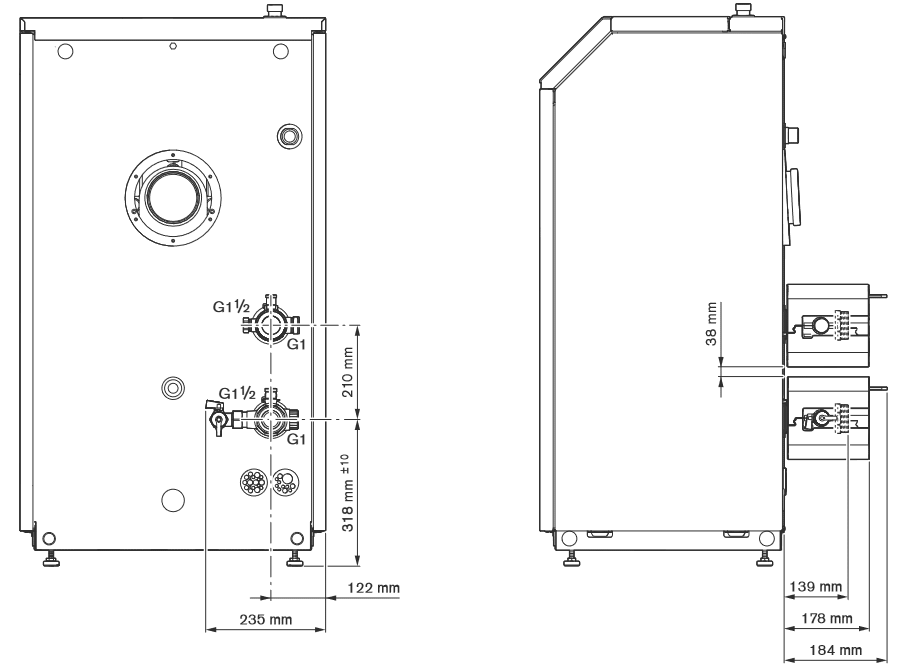 für WTC-GB 45/60-B Einzelgerät mit Schwerkraftbremse, in Verbindung mit einer hydraulischen Weiche, Systemtrennung, Pufferspeicher oder Kaskade.
