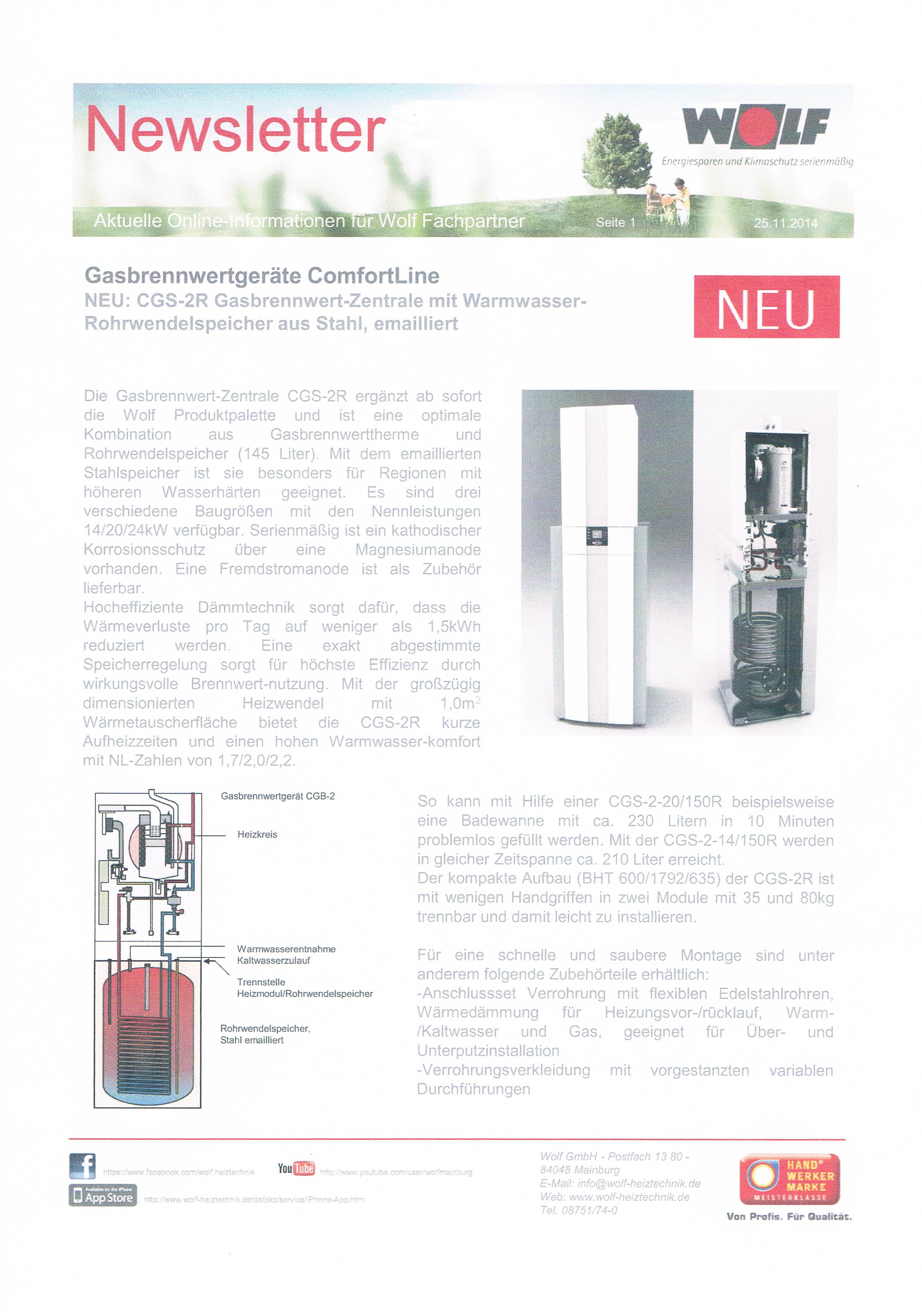 Wolf CGS-2-14/150R Gasbrennwert-Zentrale mit 150 Liter Rohrwendelspeicher - Bluestream